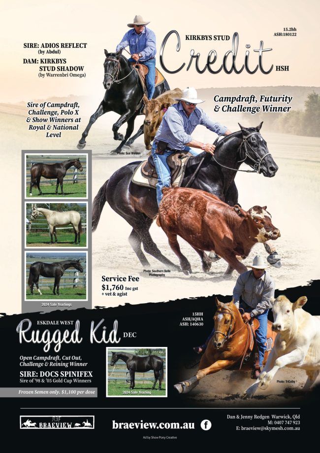 Braeview Stock Horses Stallions Stallions: Kirkby Strud Credit and Eskdale West Rugged Kid