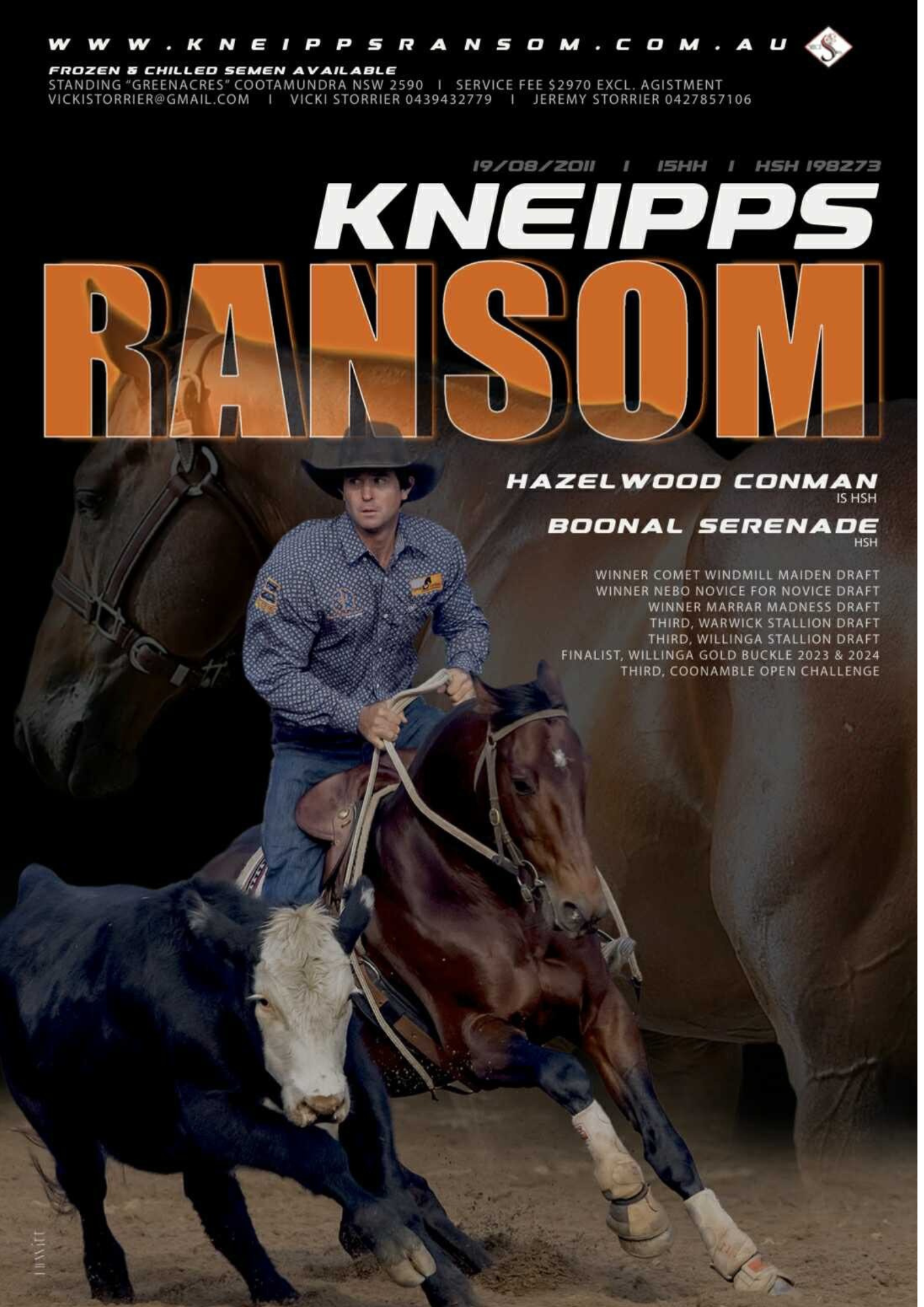 This raffle has been generously organised to support the Webster family, with all proceeds going directly to them. APH Publishing is hosting the stallion directory to showcase the stallions on offer but is not running the raffle itself. Each prize includes the stallion service fee only, and all other breeding-related costs are the responsibility of the winner. Tickets are $50 each and capped at 100 per stallion. Once sold out, the raffle for that stallion will be drawn within five business days, and winners will be notified via email. Full terms and conditions are listed on ABCRA website prior to ticket purchase – please click this link to access your iCompete account (or create one) and purchase tickets via https://abcra.com.au/